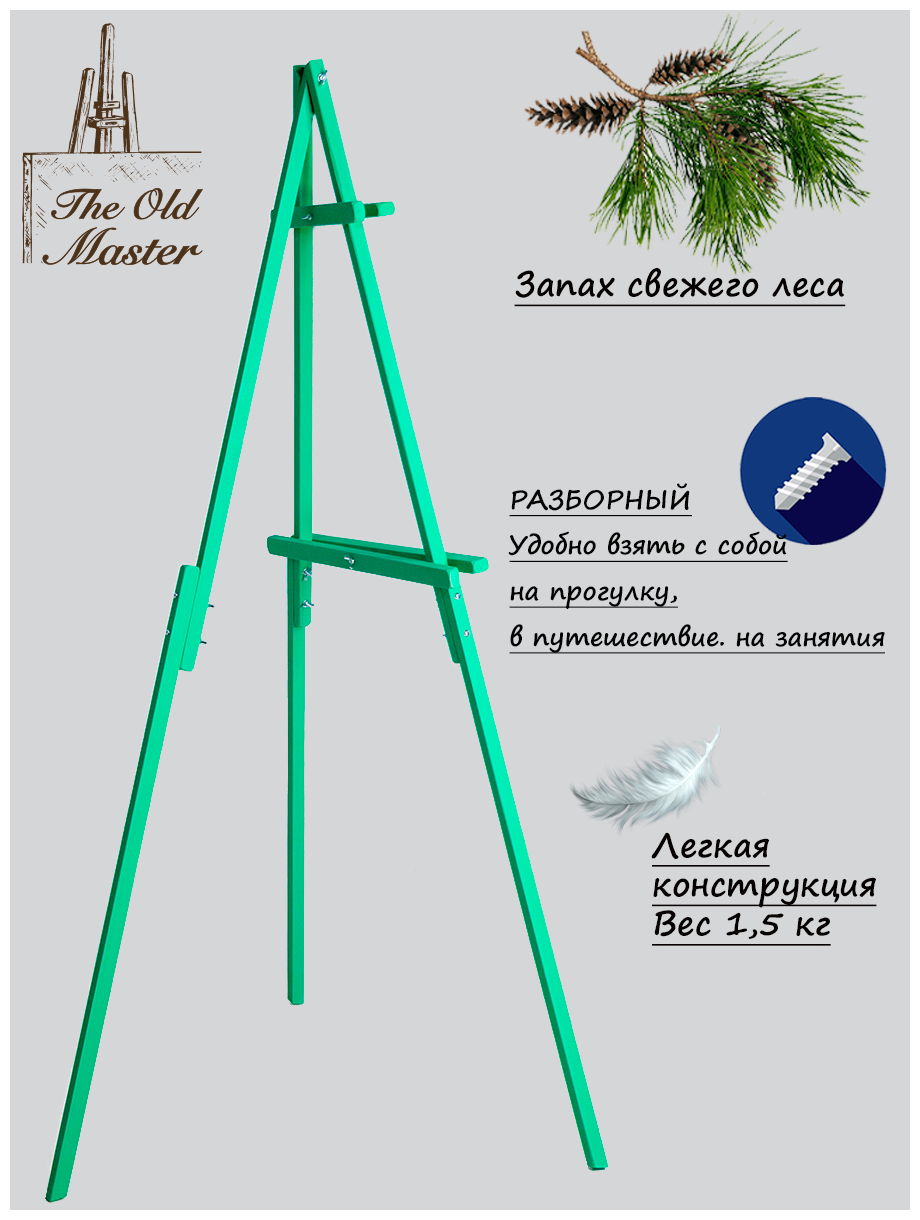 Мольберт тренога напольный и настольный для рисования The Old Master, складной, разборный, 120 см, зеленый информация: