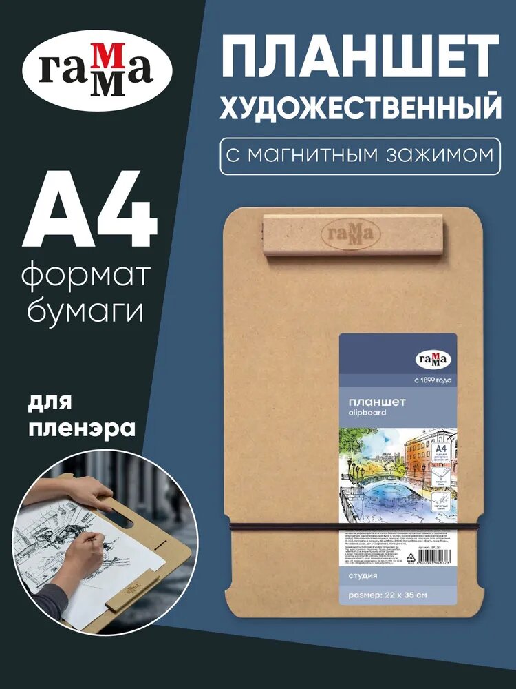 Планшет-клипборд МДФ, А4 (22*35см) Гамма "Студия", магнитный зажим информация:
