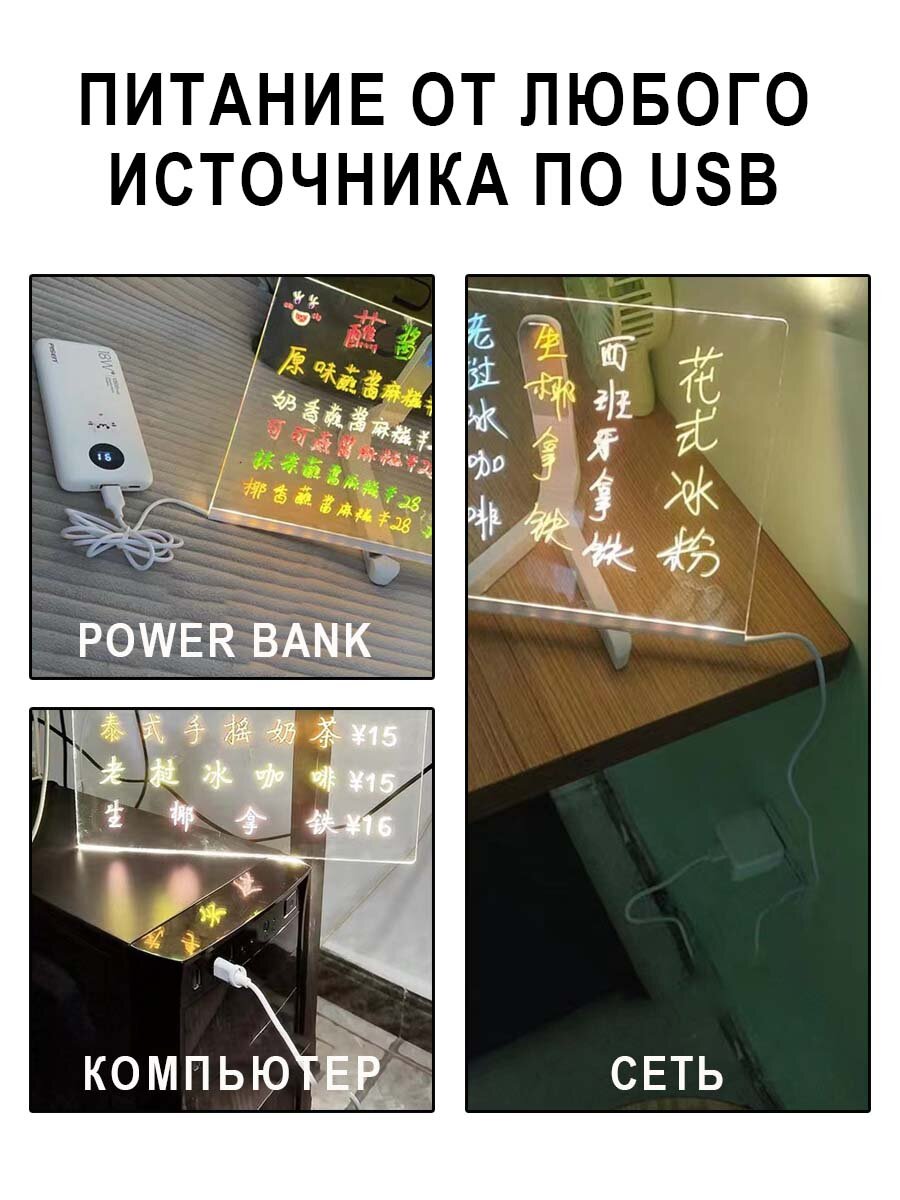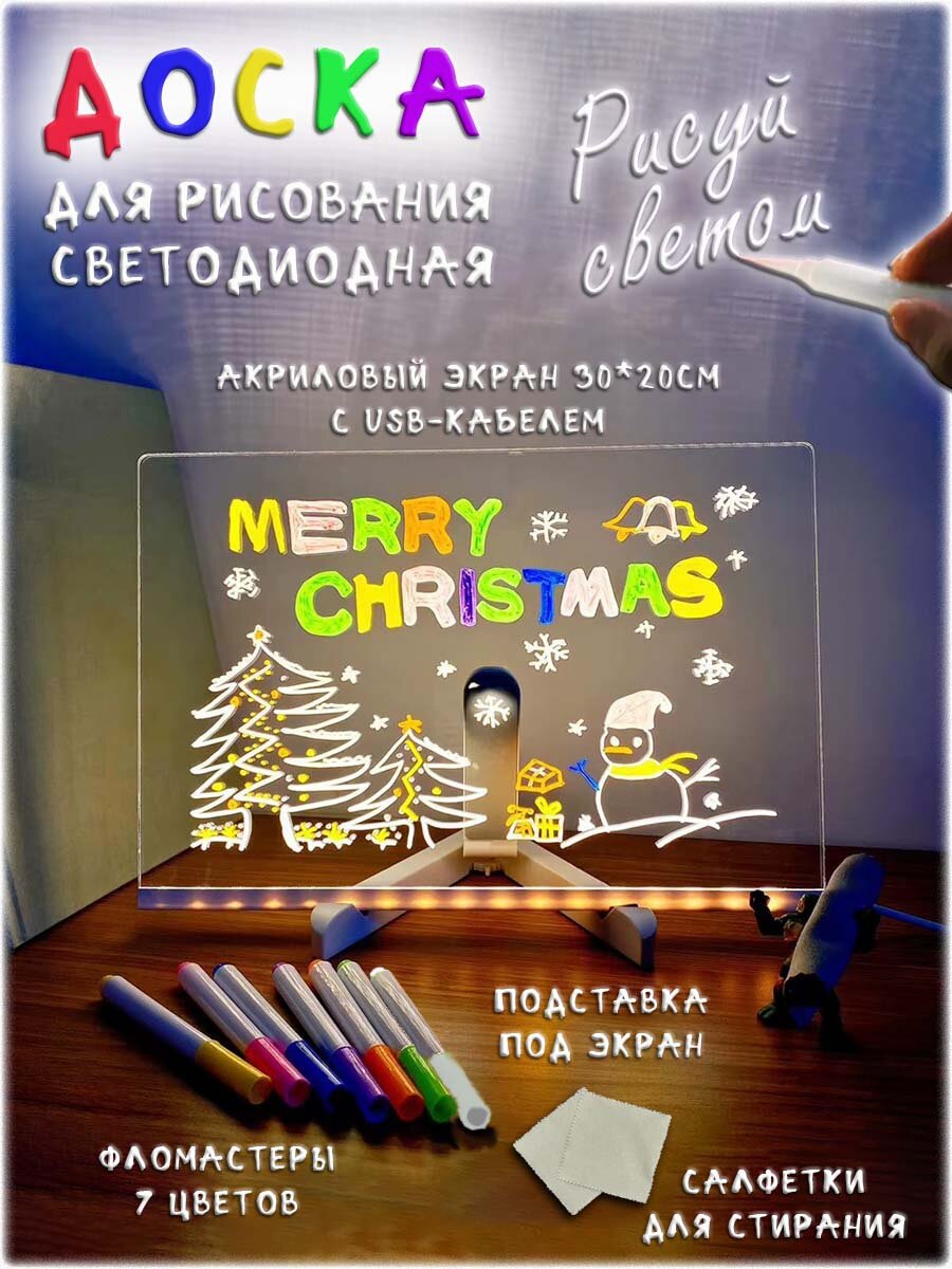 10 цен на Доска для рисования и записей COMFIAMO, светодиодная, акриловая, с фломастерами, двухсторонняя, 30 см х 20 см
