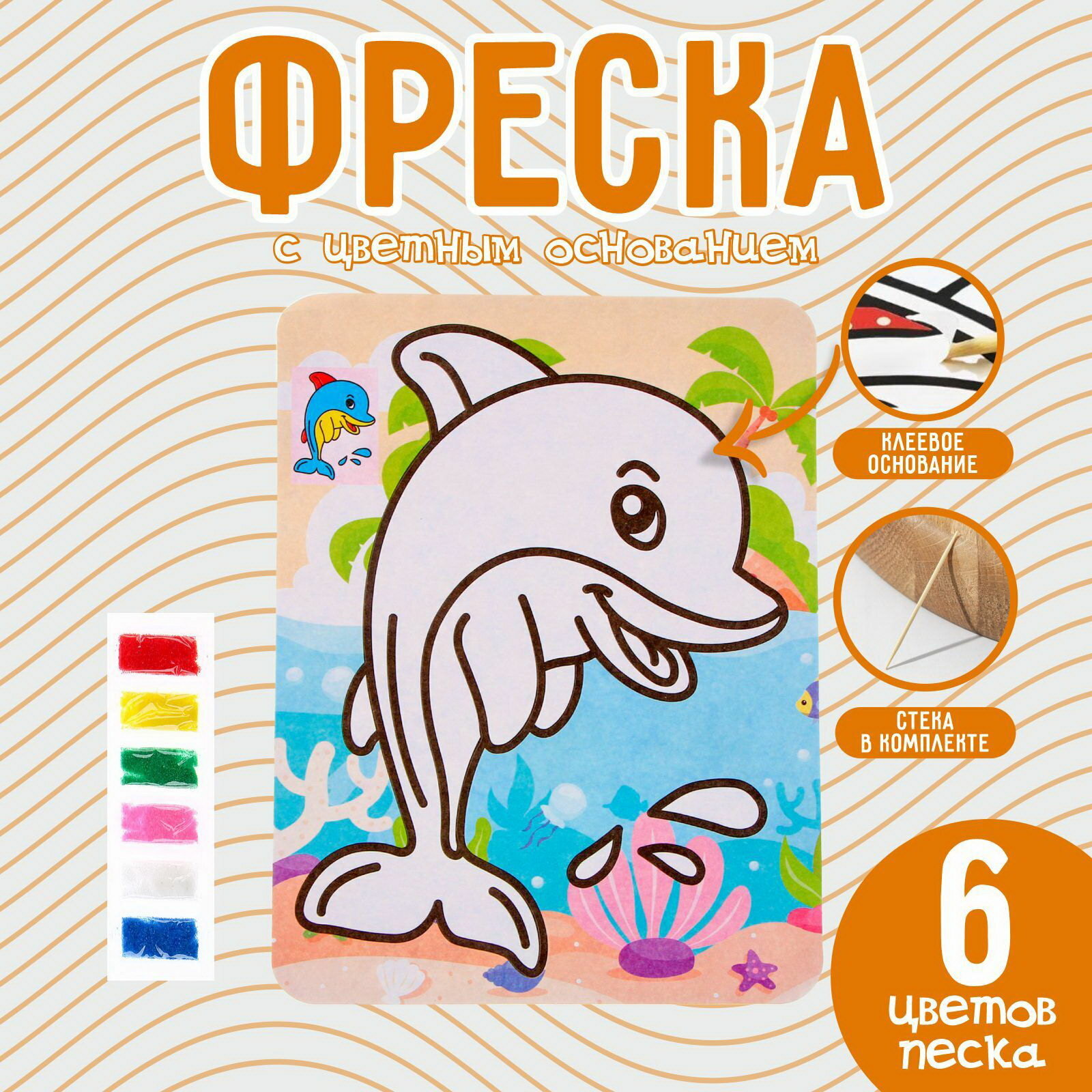 10 цен на Фреска с цветным основанием "Милый дельфин", 6 цветов песка, тематика: подводный мир