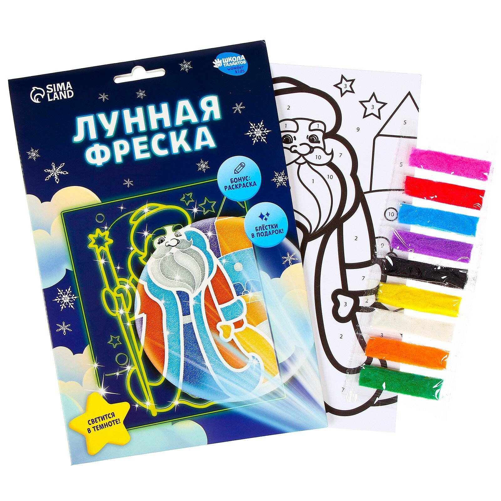 Фреска лунная "Дед Мороз" А5, 9 цветов, блестки, Школа талантов информация: