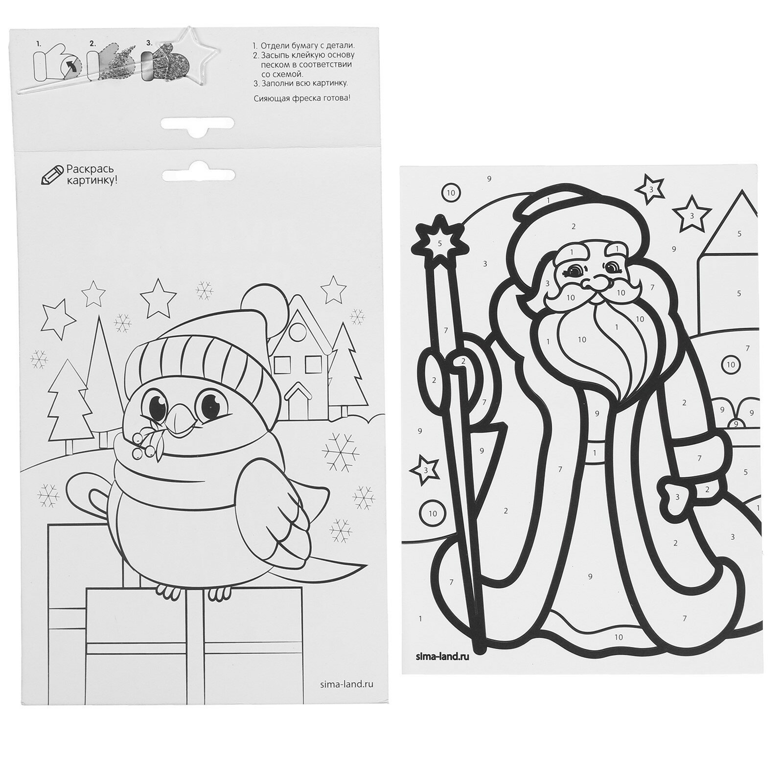 Комплект 46 шт, Аппликация из песка и блесток ТРИ совы "Змейка", с раскраской, пакет с европодвесом