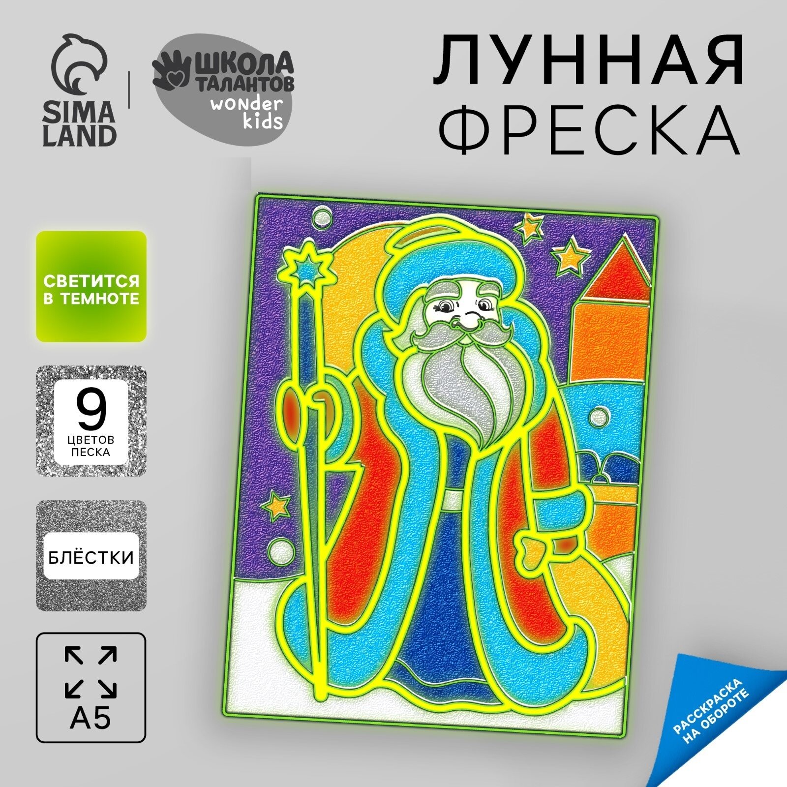 10 цен на Фреска лунная "Дед Мороз" А5, 9 цветов, блестки, Школа талантов