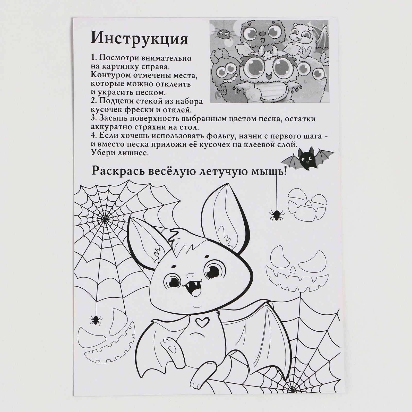 Комплект 46 шт, Аппликация из песка и блесток ТРИ совы "Змейка", с раскраской, пакет с европодвесом