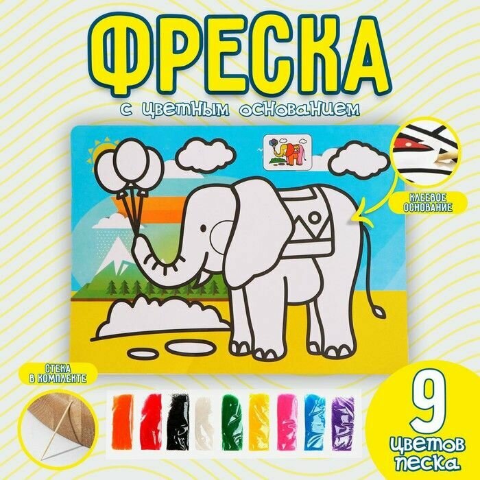 Фреска с цветным основанием "Слон" 9 цветов песка по 2 г, возраст: детский информация: