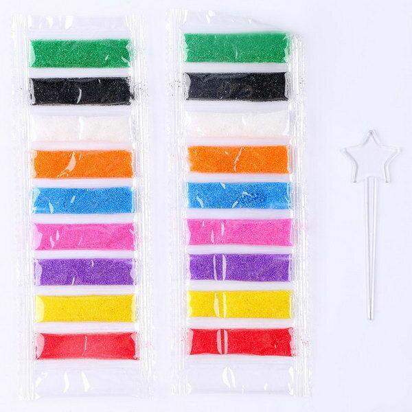 Комплект 46 шт, Аппликация из песка и блесток ТРИ совы "Змейка", с раскраской, пакет с европодвесом