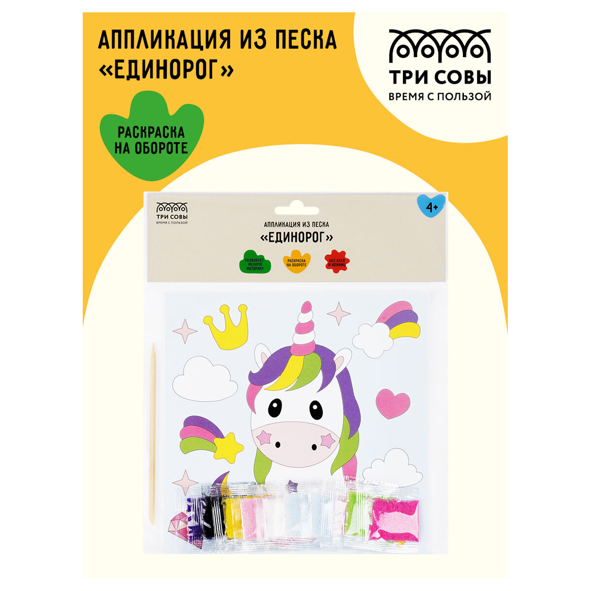Отзывы на Аппликация из песка ТРИ совы "Единорог", с раскраской, пакет с европодвесом, 2 штуки