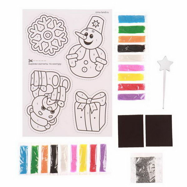10 цен на Магнит - фреска своими руками на новый год "Снеговик и мишка", набор 4 шт, набор для творчества