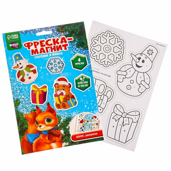 Отзывы на Магнит - фреска своими руками на новый год "Снеговик и мишка", набор 4 шт, набор для творчества