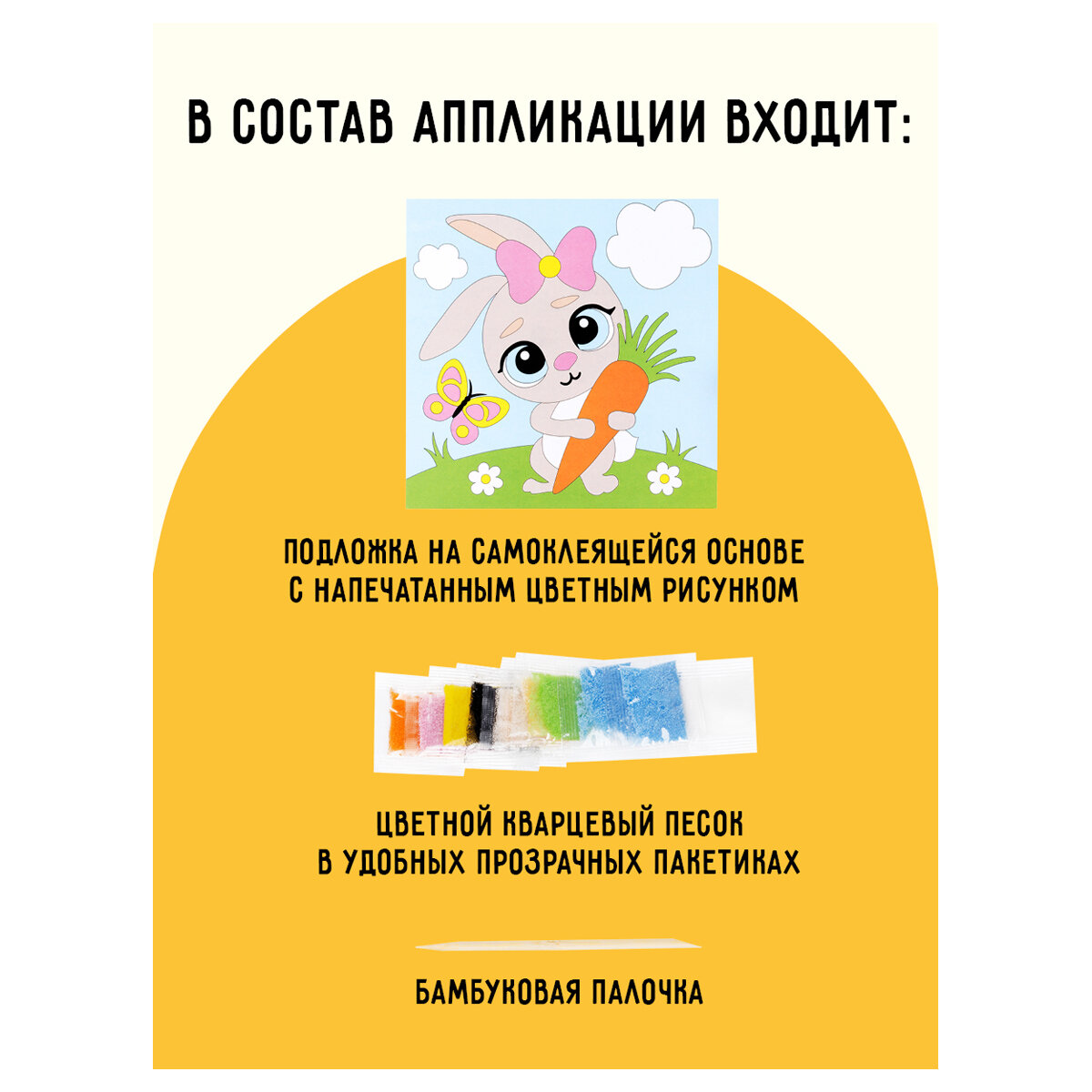 Аппликация из песка ТРИ совы "Зайка", с раскраской, пакет с европодвесом, 2 штуки информация: