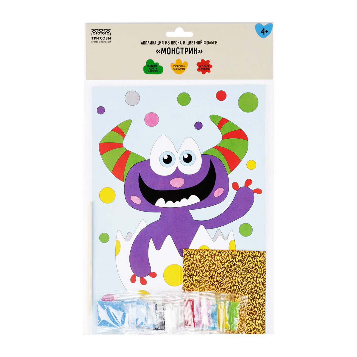 10 цен на Аппликация из песка и цветной фольги ТРИ совы "Монстрик", с раскраской, пакет с европодвесом, 2 штуки