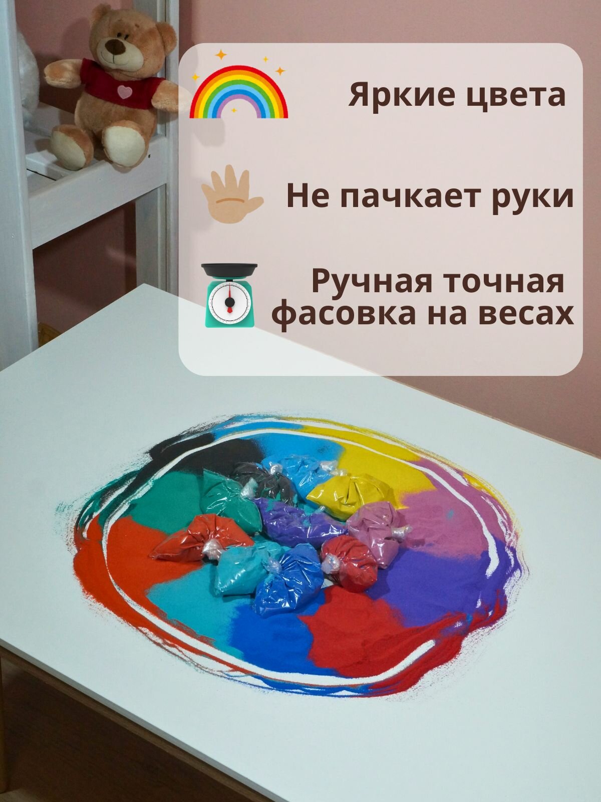 Отзывы на Цветной кварцевый песок для рисования и творчества, 10 ярких цветов, 1кг