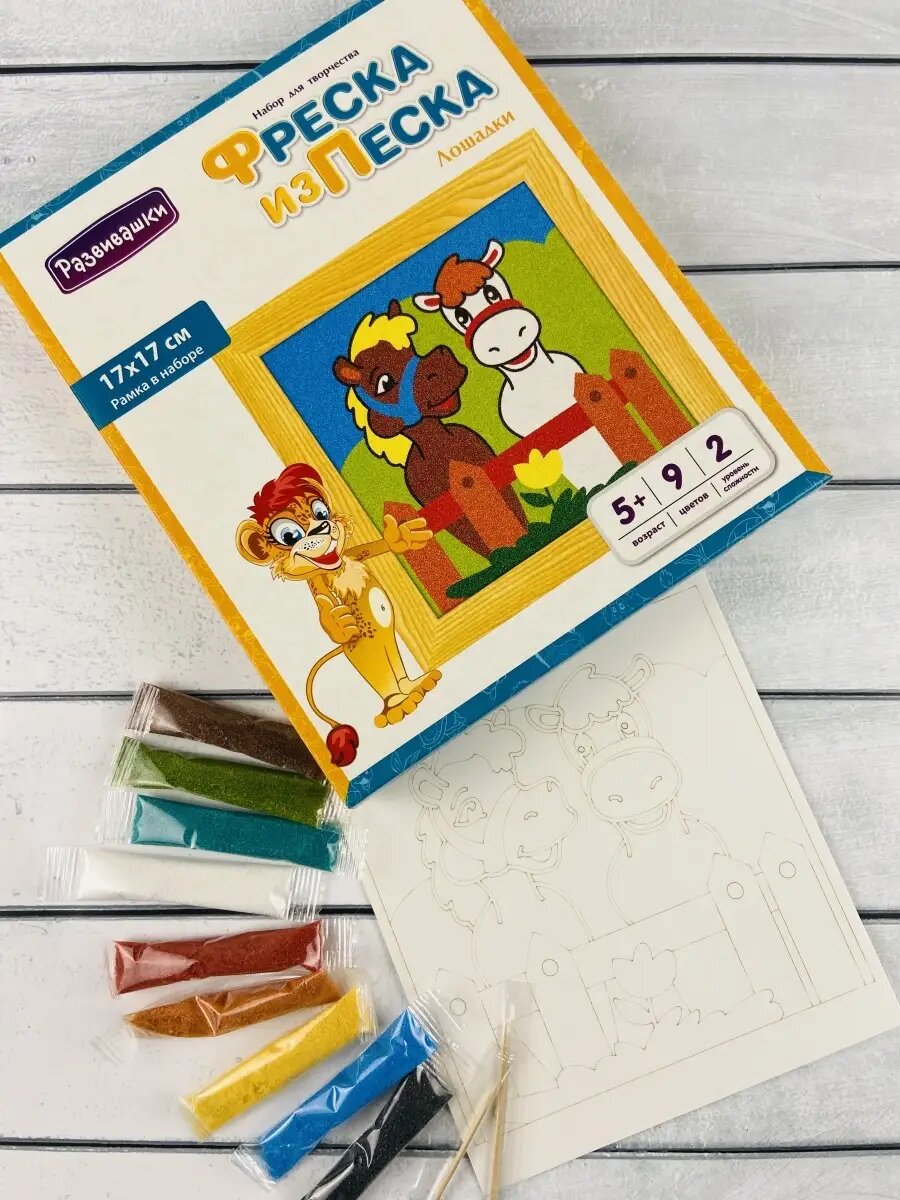 10 цен на Фреска из цветного песка картины роспись Лошадки Пони