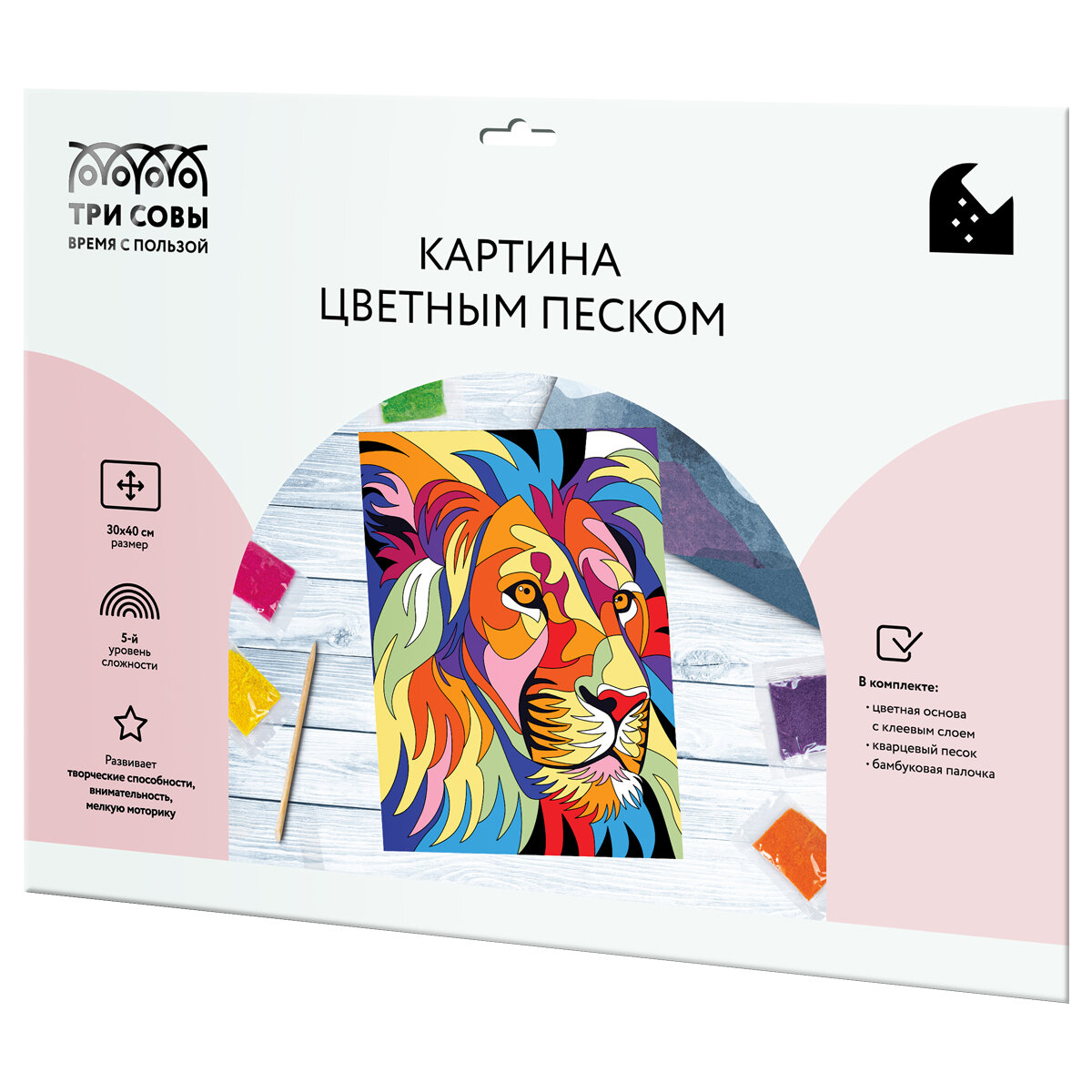 10 цен на Картина цветным песком ТРИ совы "Яркий лев", картонный пакет с европодвесом (арт. 344936)