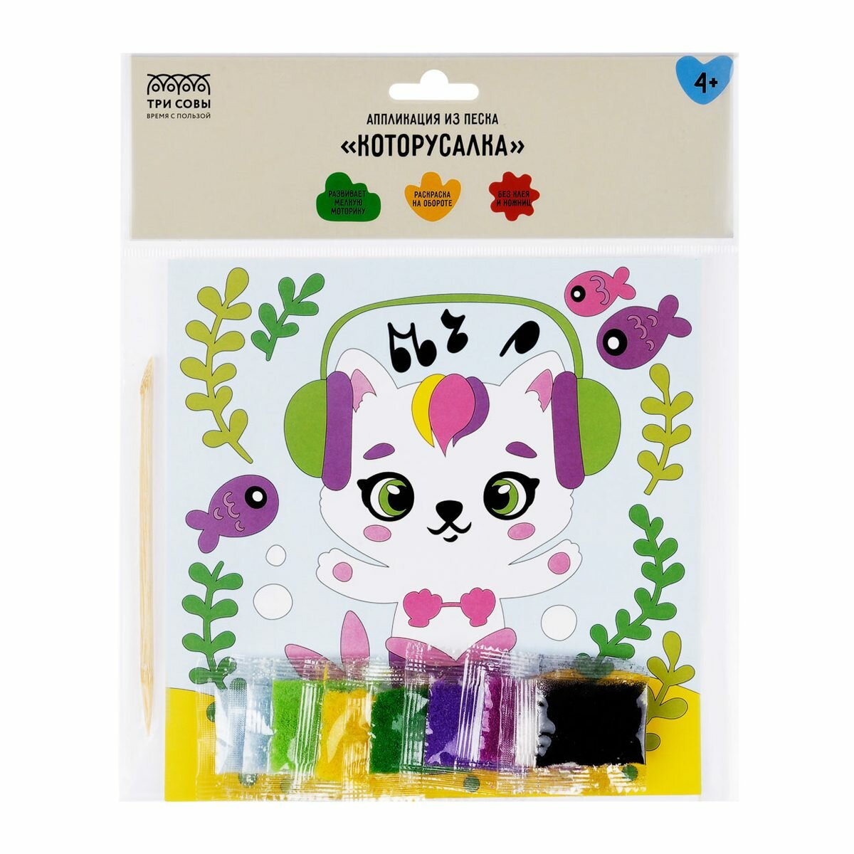 Аппликация из песка Три Совы "Которусалка", с раскраской, пакет с европодвесом (ФП_47844), 3шт. информация: