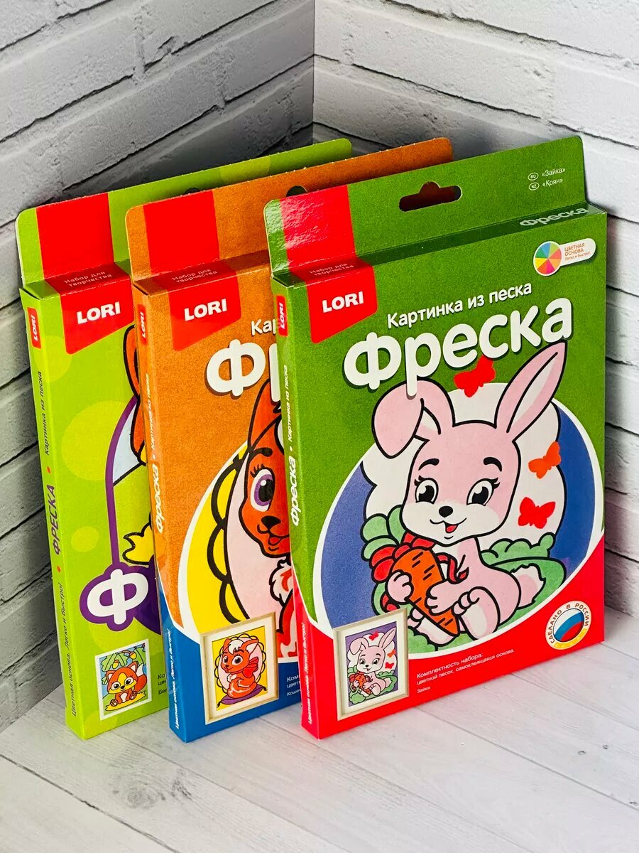 10 цен на Картинка из песка набор Зайка Кошка котенок Белка Лори