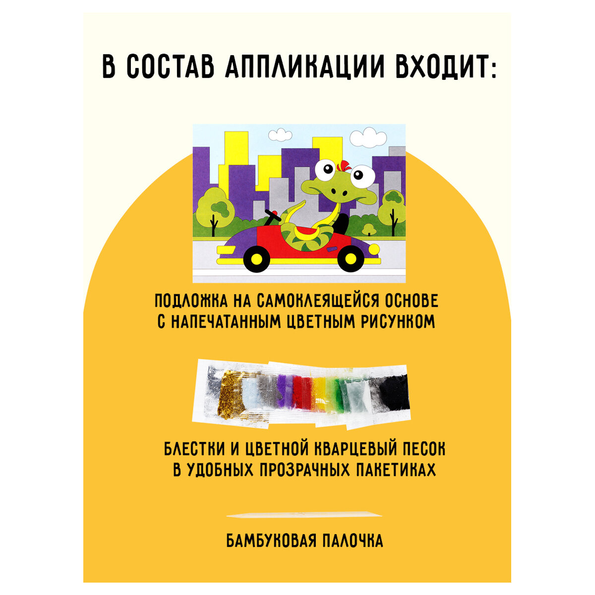 Комплект 18 шт, Аппликация из песка и блесток ТРИ совы "Змейка", с раскраской, пакет с европодвесом информация: