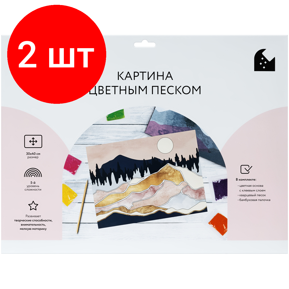 10 цен на Комплект 2 шт, Картина цветным песком ТРИ совы "Полнолуние в горах", картонный пакет с европодвесом