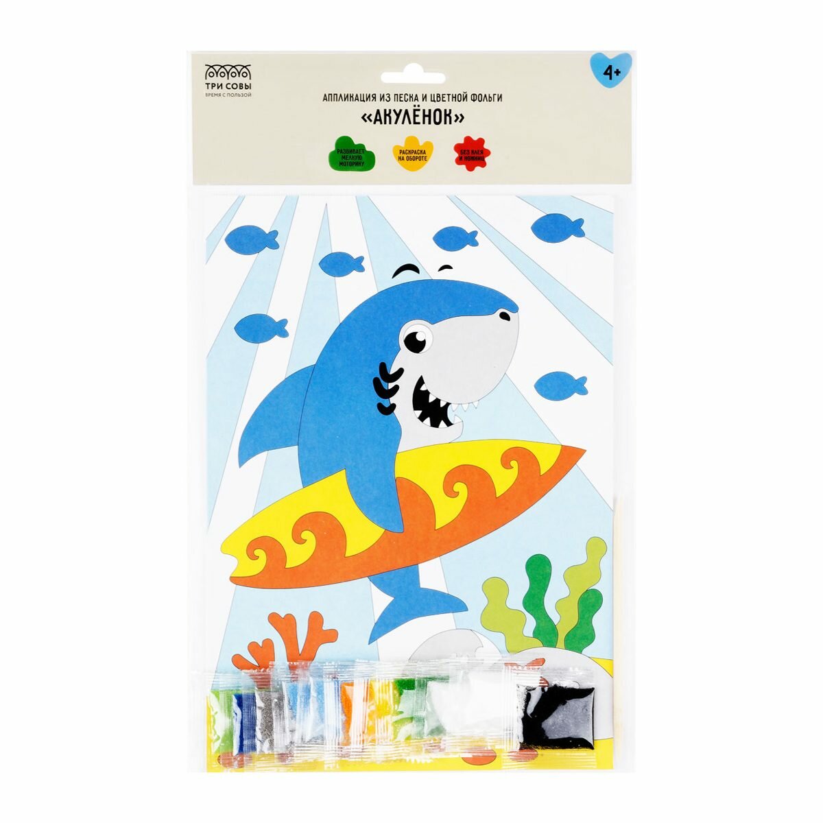 Аппликация из песка и цветной фольги Три Совы "Акуленок", с раскраской, пакет с европодвесом (ФП_47856), 3шт. информация: