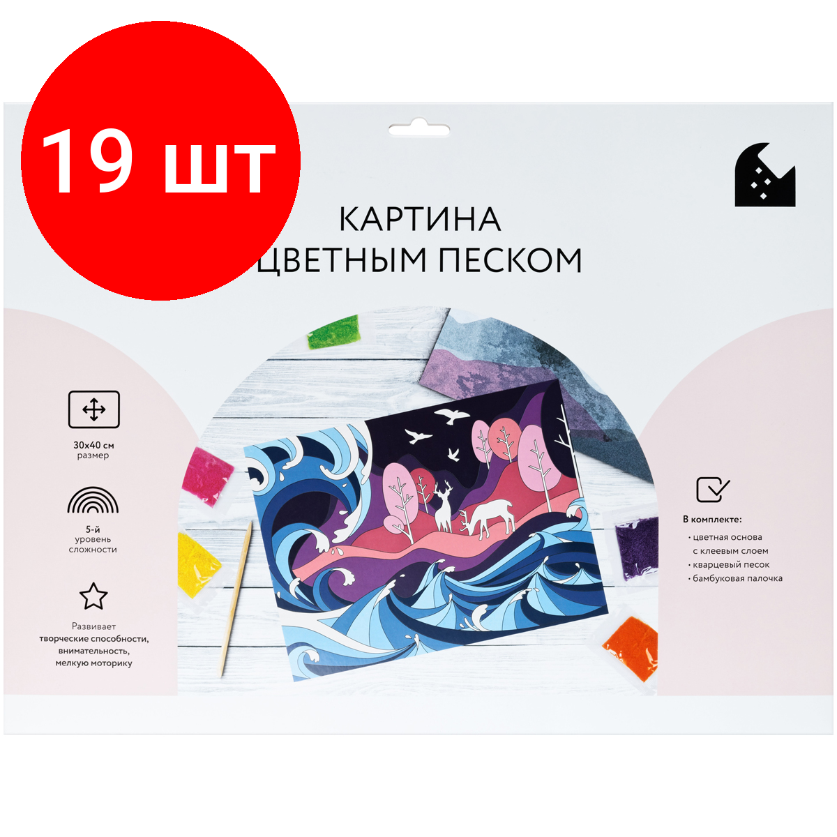 10 цен на Комплект 19 шт, Картина цветным песком ТРИ совы "Таинственный лес", картонный пакет с европодвесом
