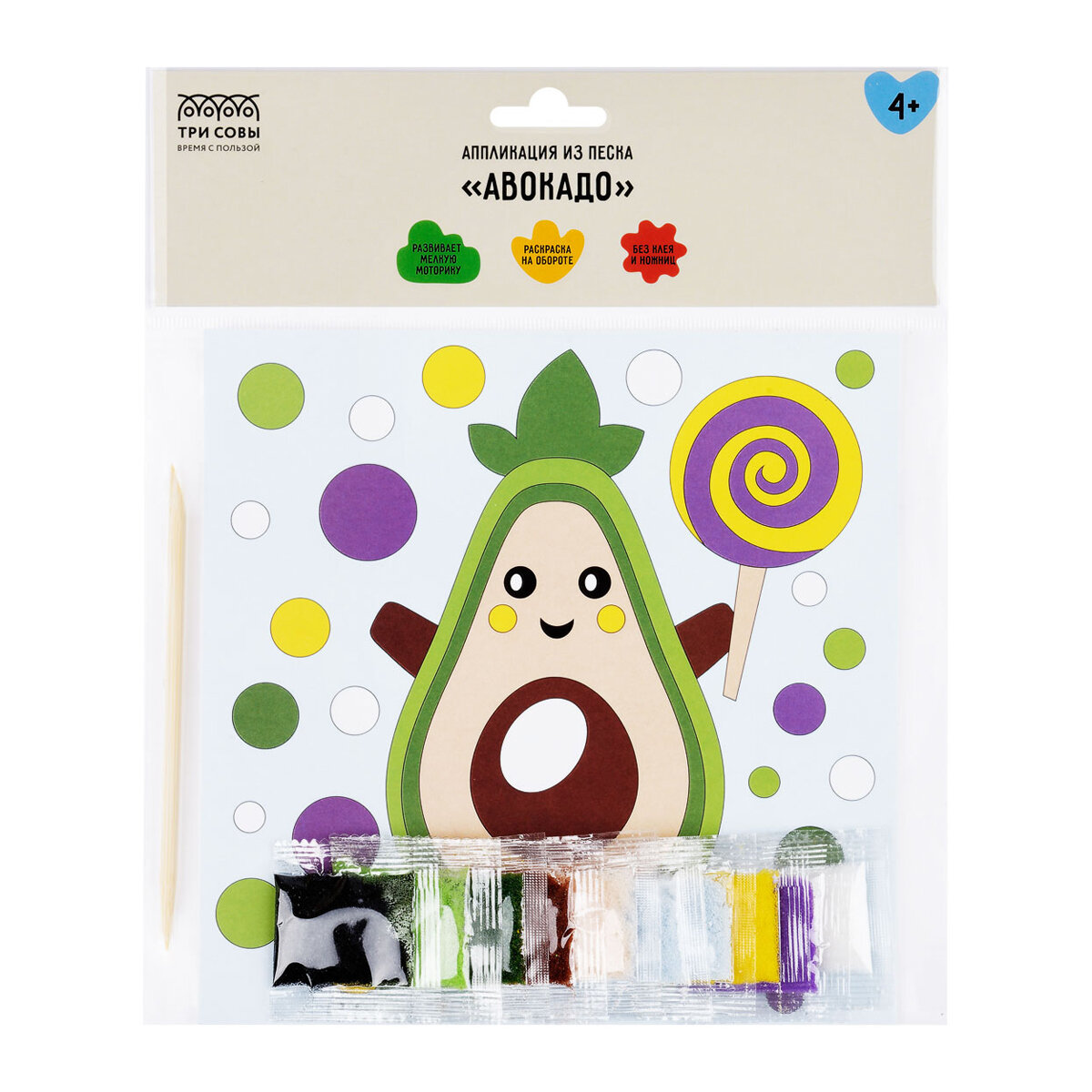 Отзывы на Комплект 26 шт, Аппликация из песка ТРИ совы "Авокадо", с раскраской, пакет с европодвесом