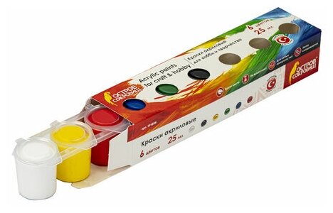 Отзывы на Комплект 6 шт, Краски акриловые для рисования и хобби остров сокровищ 6 цветов по 25 мл, 191688