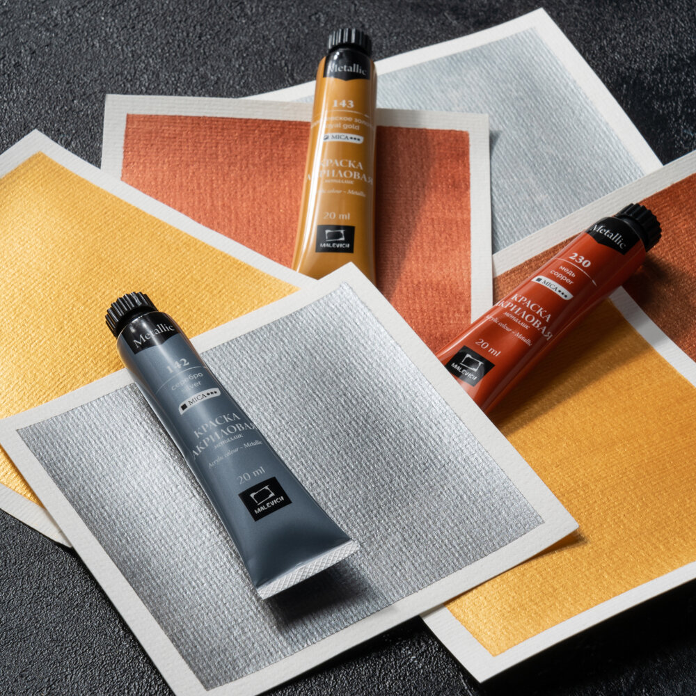 Отзывы на Набор акриловых красок металлик Малевичъ, акрил 6 цветов по 20 мл