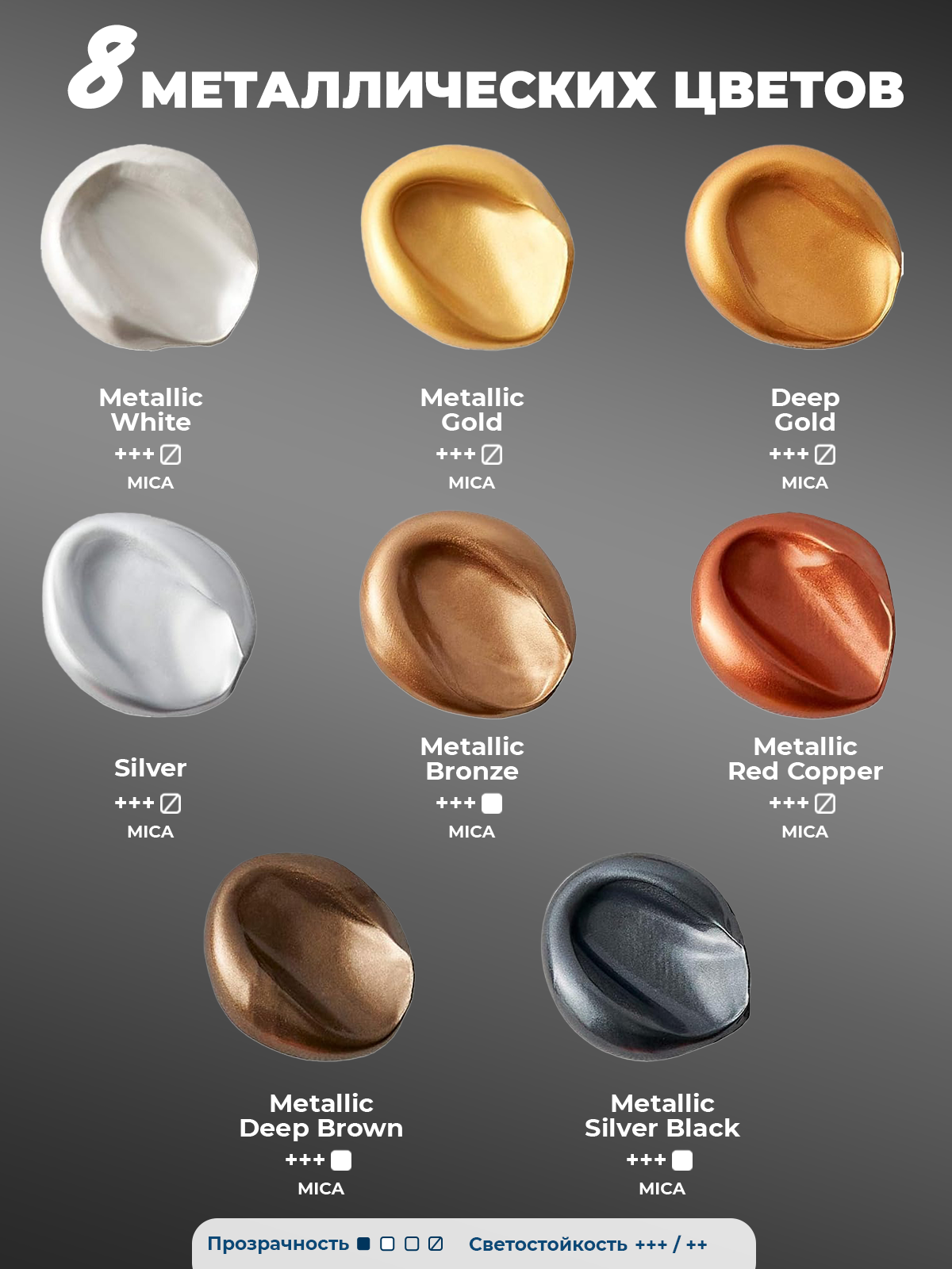 Набор акриловых красок для рисования WiMi металлик, 8 цветов информация: