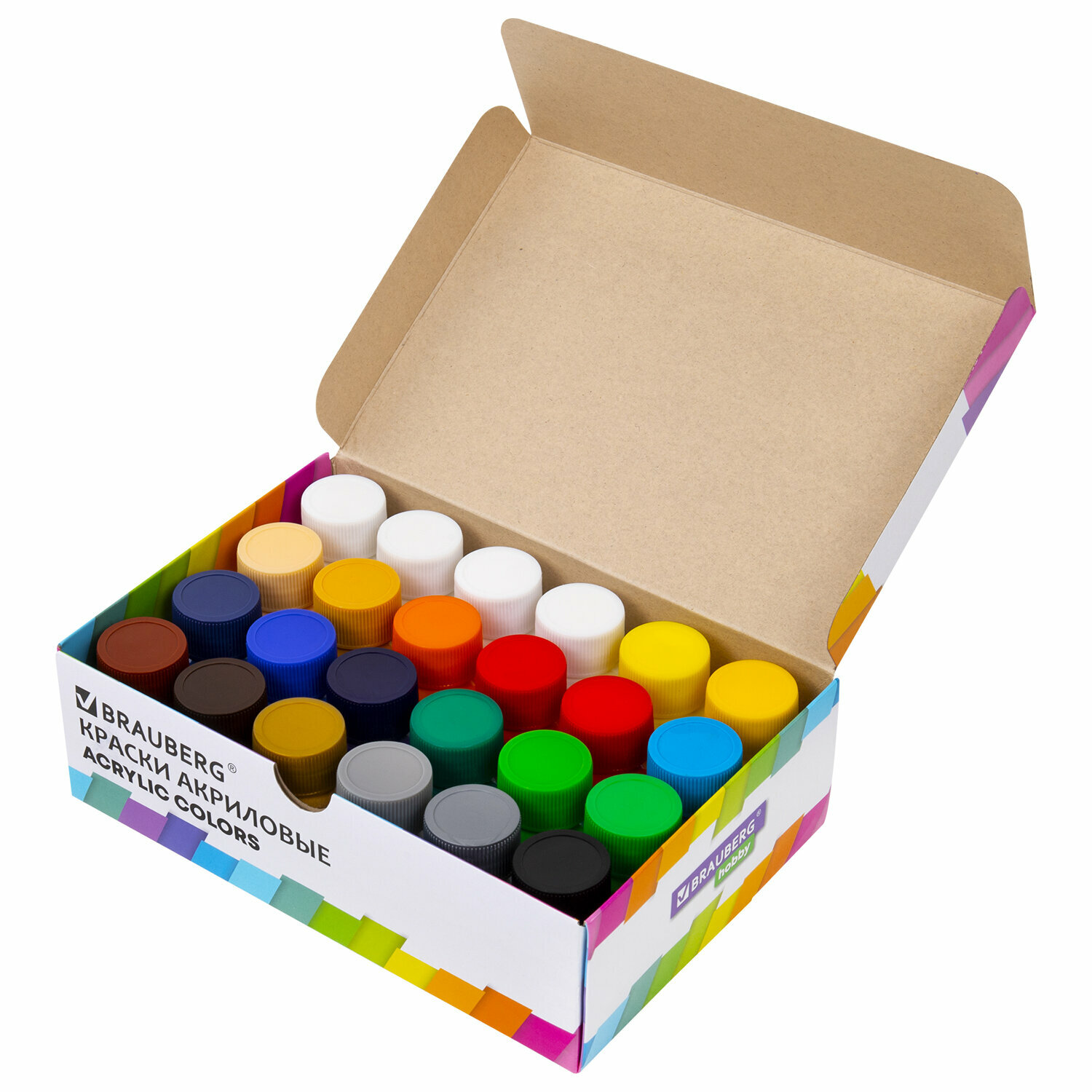 10 цен на Краски акриловые художественные 24 шт, 21 цвет в банках по 22 мл, BRAUBERG HOBBY, 192412, 1шт. в комплекте