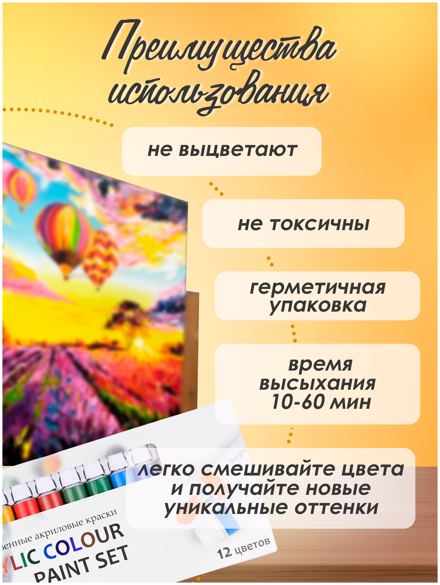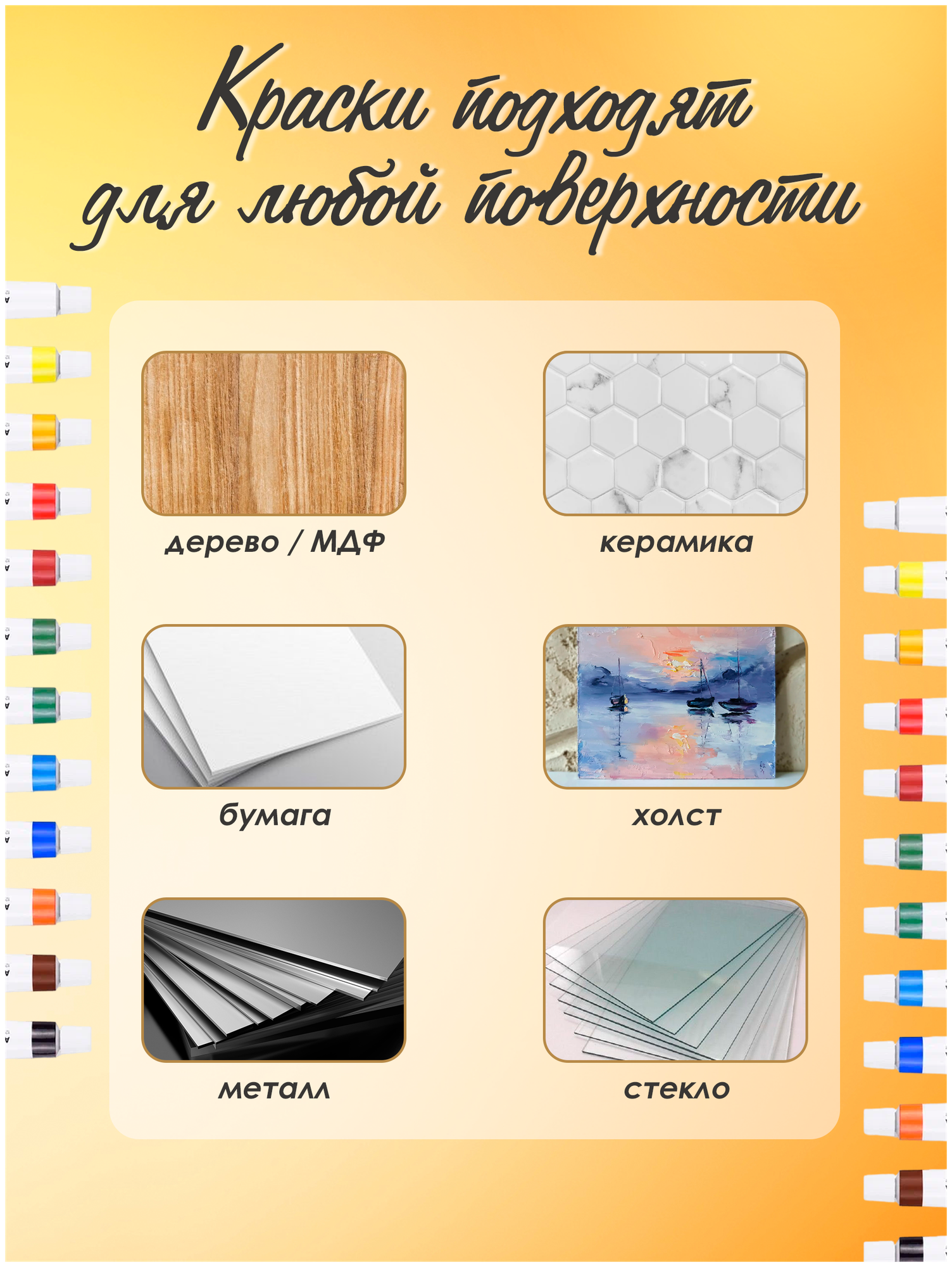 Краски акриловые художественные 12 цветов по 12 мл информация: