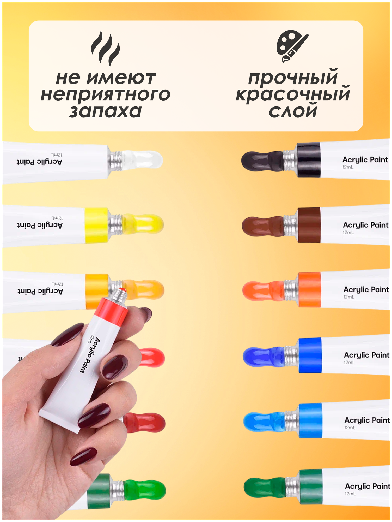 10 цен на Краски акриловые художественные 12 цветов по 12 мл