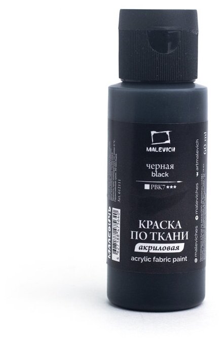 Краска акриловая по ткани Малевичъ, черный акрил по ткани 60 мл информация: