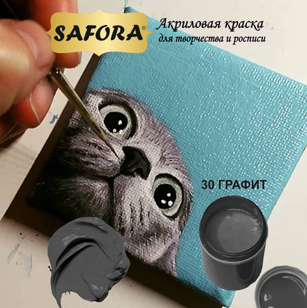 10 цен на Краска акриловая художественная, краска для рисования SAFORA, графит 70г, матовое покрытие