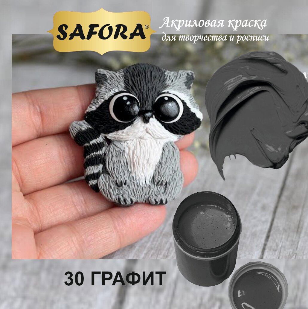 Краска акриловая художественная, краска для рисования SAFORA, графит 70г, матовое покрытие информация: