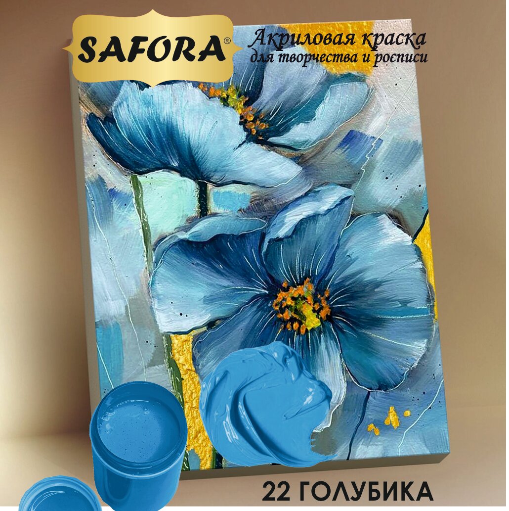 Краска акриловая художественная, краска для рисования SAFORA, сапфир 70г, матовое покрытие 314 ₽