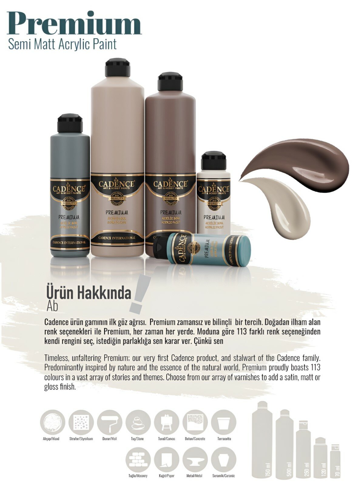 Акриловая краска Cadence Premium Acrylic Paint, 70 мл. Mink-4300 364 ₽