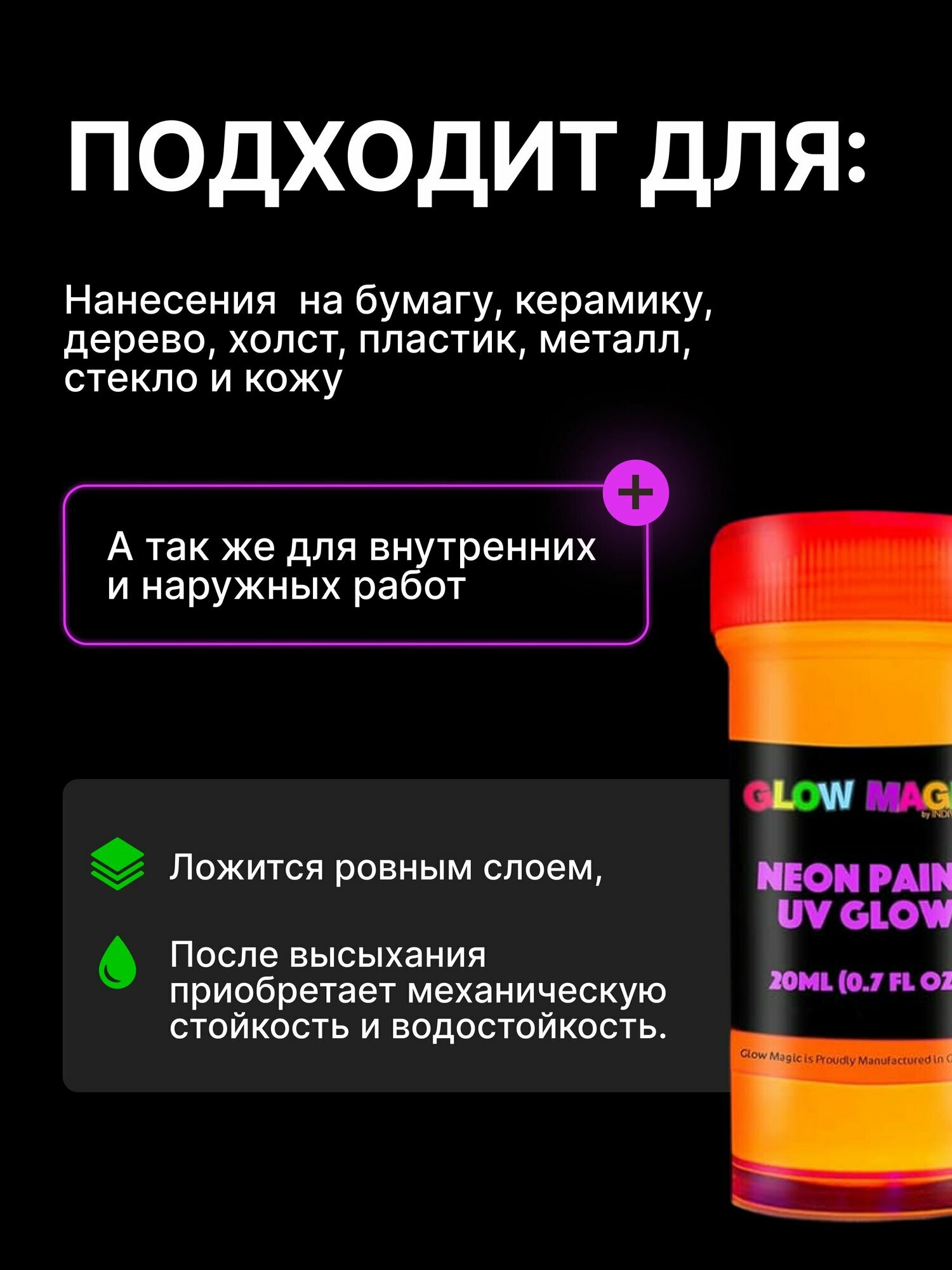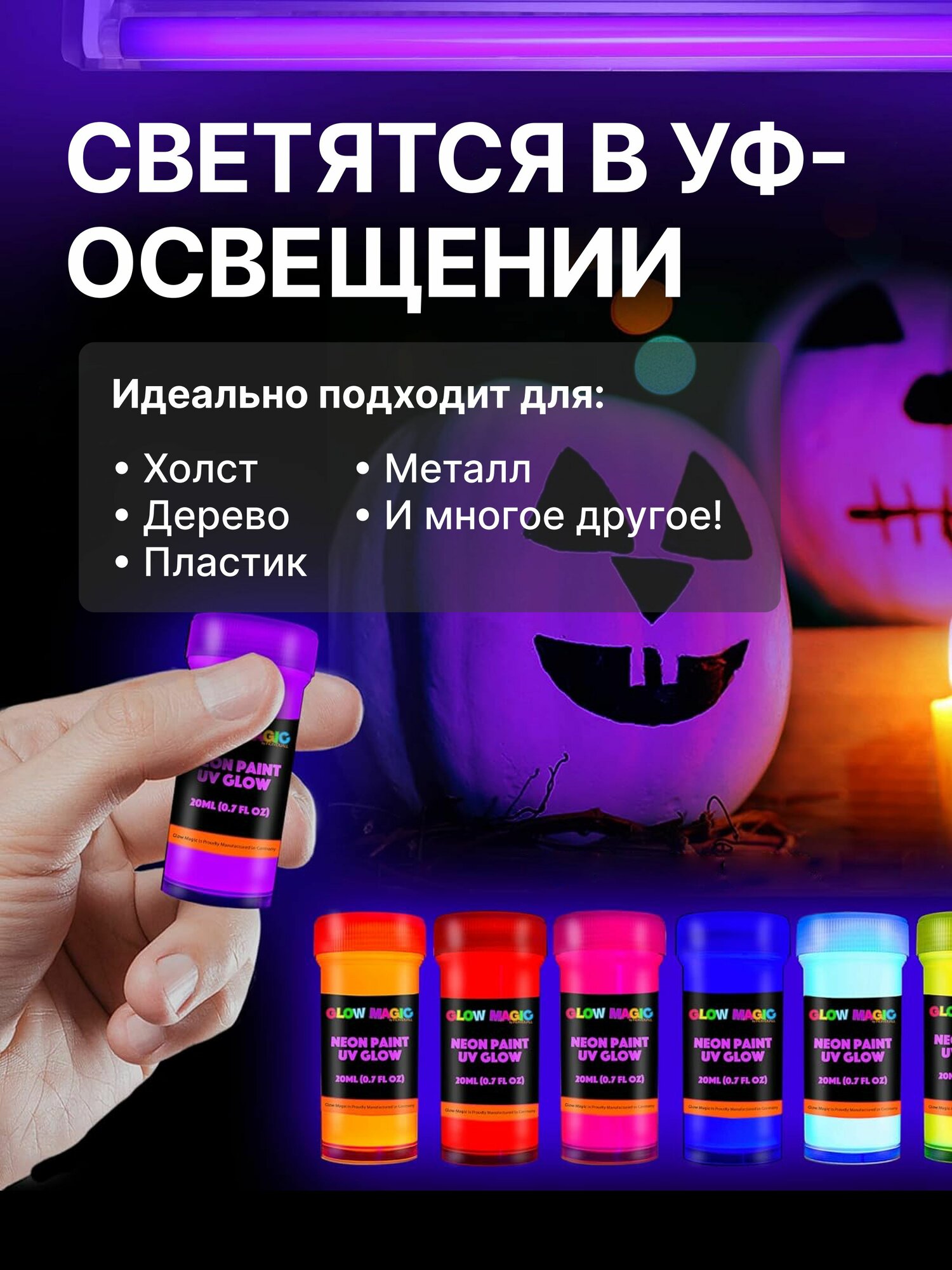 Отзывы на Набор акриловых красок для рисования Glow Magic by Individuall, Neon Paint UV Glow, 8 цветов, 20 мл, неоновые
