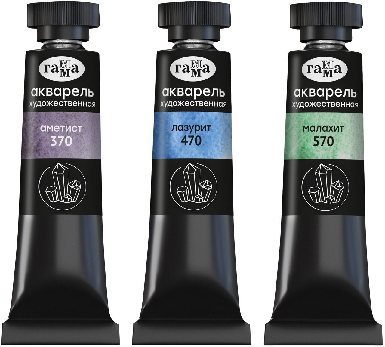 Гамма Акварель художественная Гамма "Старый Мастер" "Талисман" набор №1 (аметист, лазурит, малахит), 3цв информация: