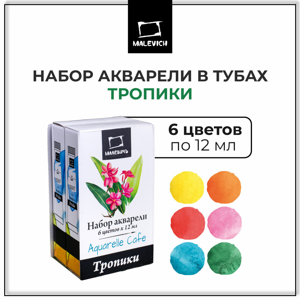 Набор акварели Малевичъ Frida, Tropical, акварельные краски 6 цветов по 12 мл информация:
