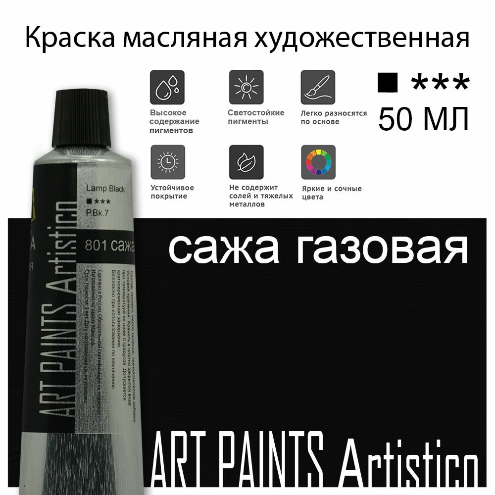 Краска масляная ART PAINTS Artistico 801 сажа газовая, 50 мл информация: