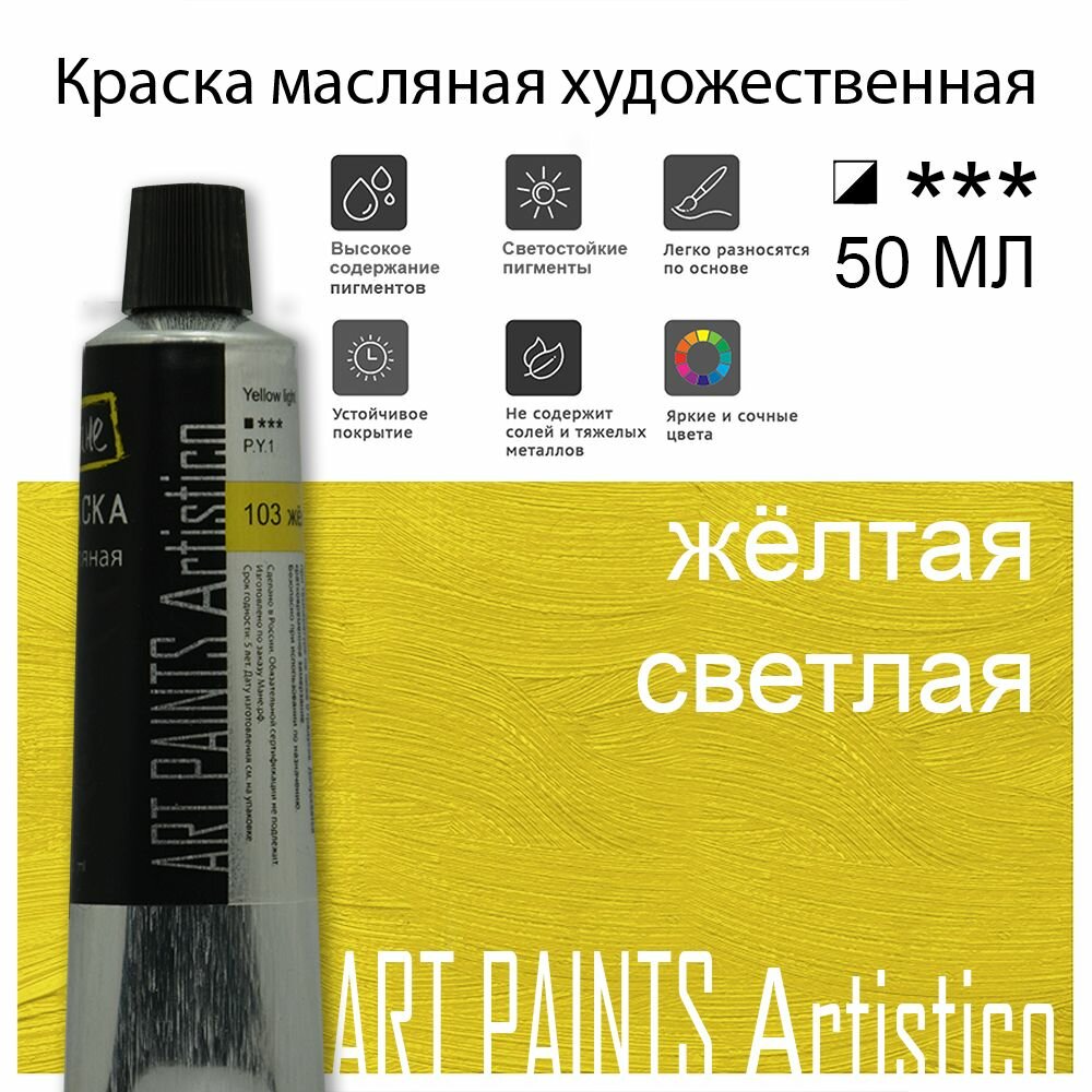 Краска масляная ART PAINTS Artistico 103 жёлтая светлая, 50 мл информация: