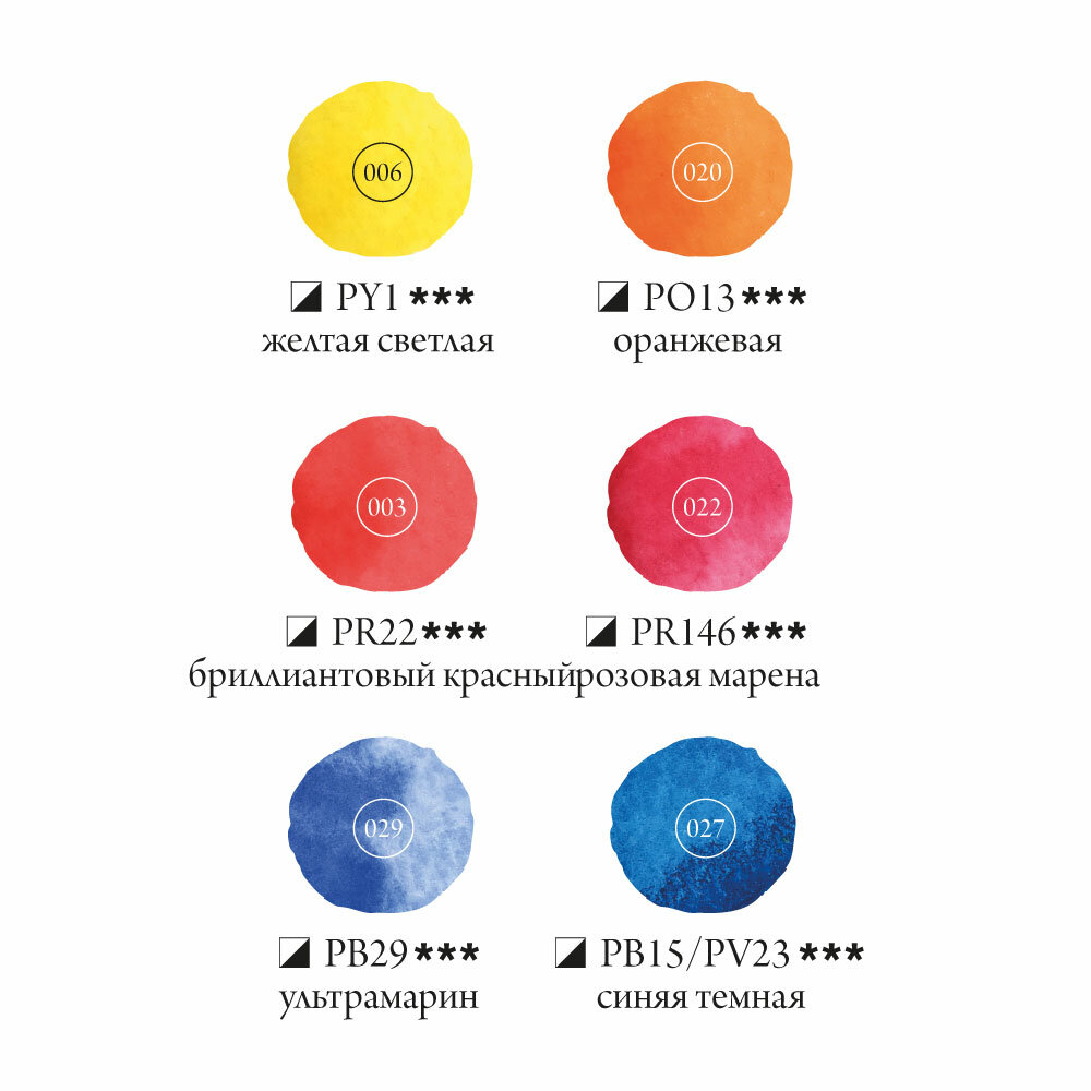 Набор акварели Малевичъ "Frida Basic", 6 цветов, акварель в тубах по 12 мл информация: