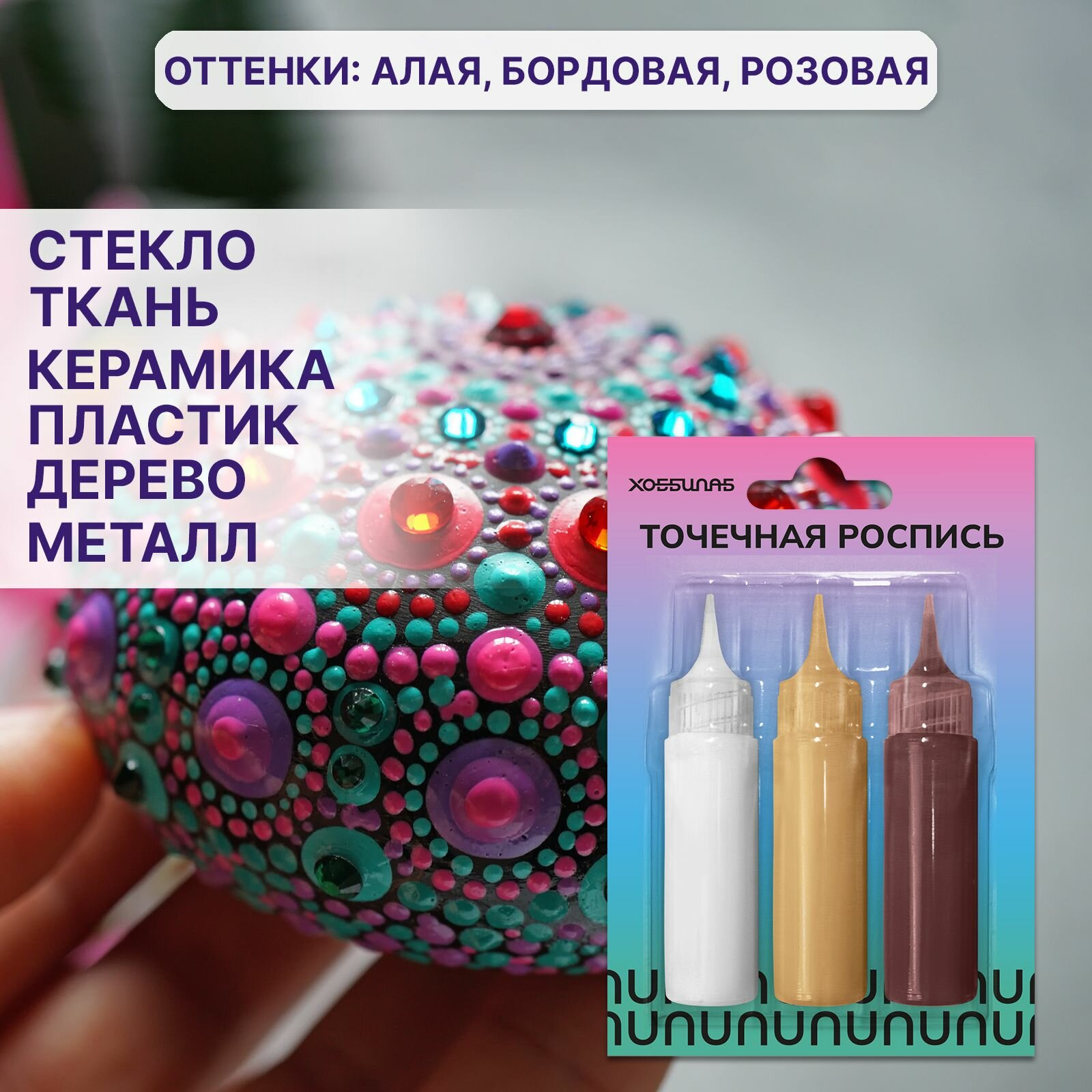 10 цен на Набор красок хоббилаб "Белый, крем-брюле, шоколад", акриловые, для точечной росписи, 20мл