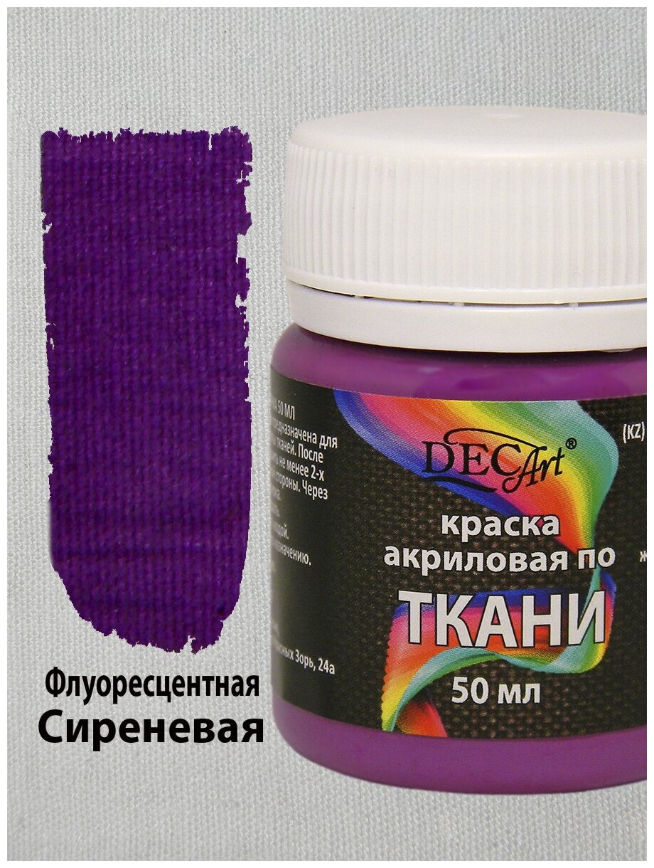 Краска акриловая по ткани DecArt Сиреневая флуоресцентная 50 мл, Экспоприбор информация: