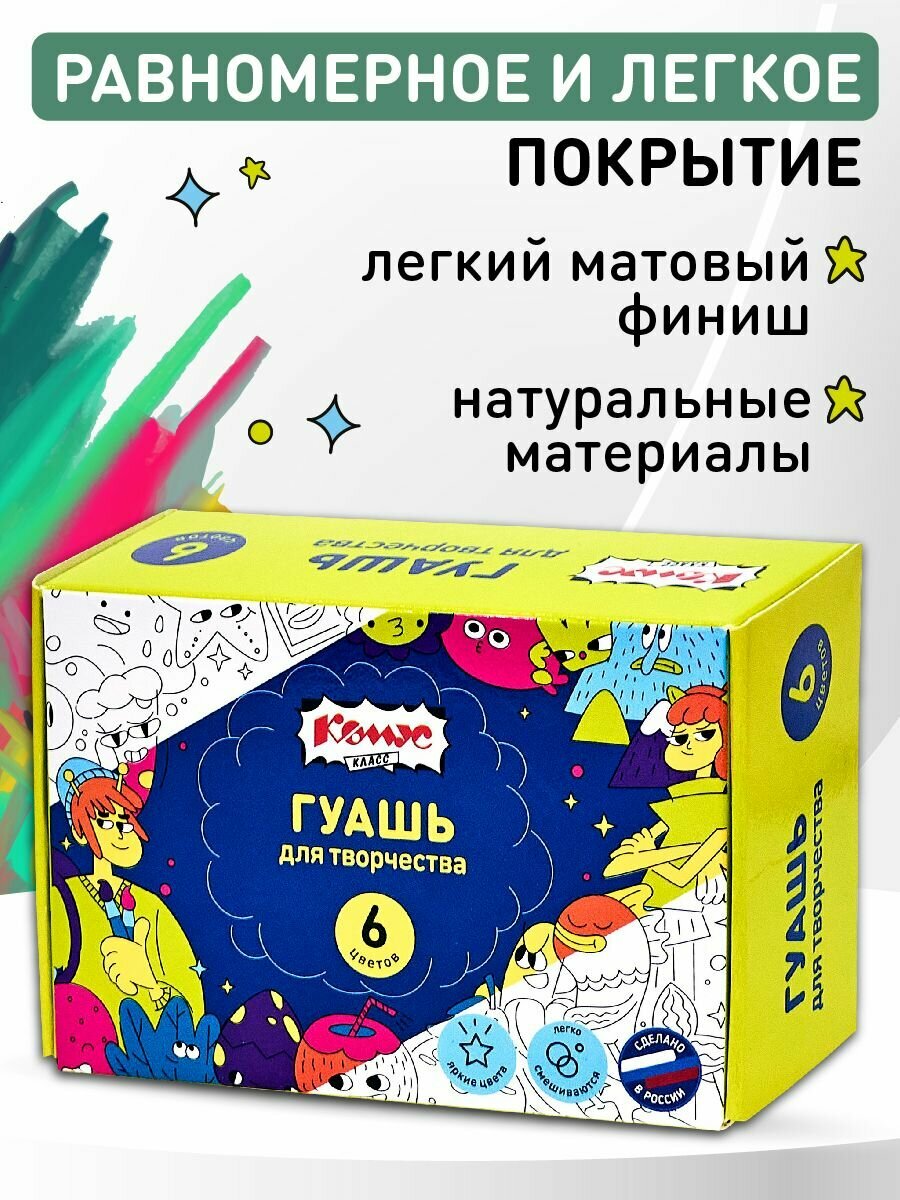 Гуашь для рисования Комус Класс Максики, 6 цветов, 10 мл информация: