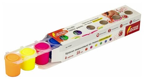 Краски акриловые по ткани неон остров сокровищ 6 цветов по 25 мл, 191697 (арт. 191697)