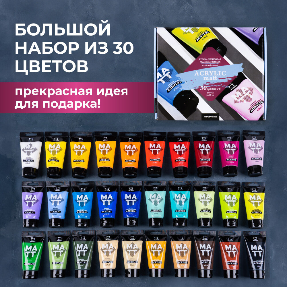 Набор матовых акриловых красок Малевичъ, акрил матовый 30 цветов информация: