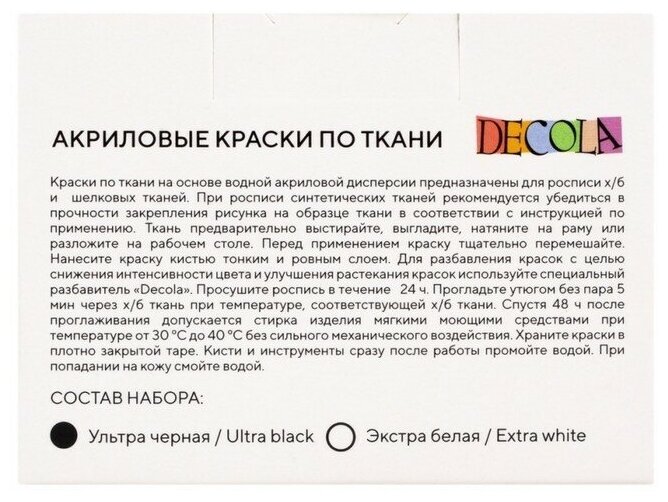 Акриловая белая и черная краска для рисования по ткани Decola 2 цвета 50 мл информация: