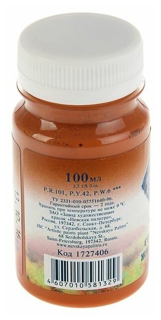 Сиена жженая, гуашь «Мастер класс», 100 мл информация: