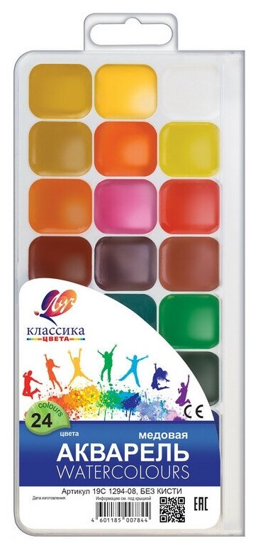 Краски акварельные ЛУЧ «Классика», 24 цвета, медовые, без кисти, пластиковая коробка, 19С1294-08 информация: